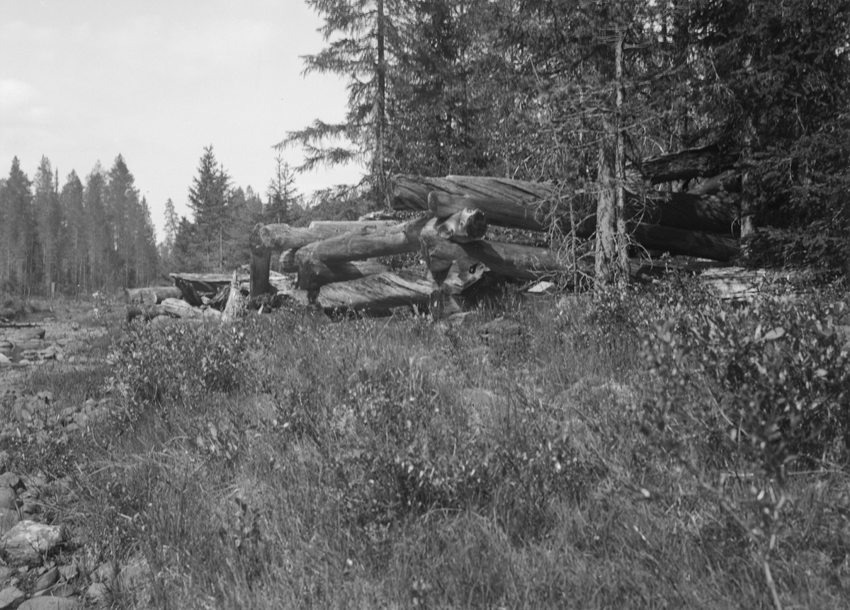 Resterna av en till bruket hörande timmersåg, som legat på bäckens östra sida ungefär i höjd med smedjebyggnaden.
