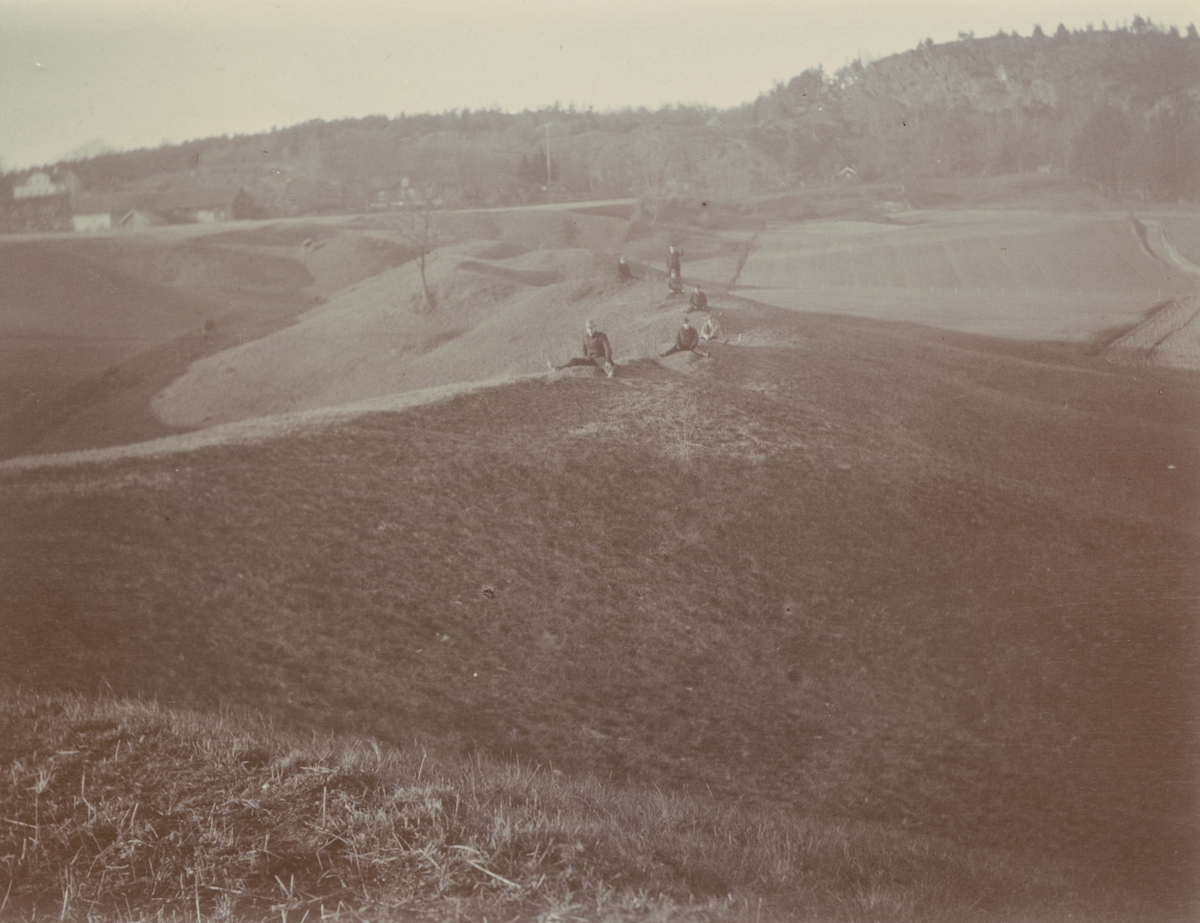 Diverse bilder från Fred Goldbergs samling. Motiv av män som sitter på kulle.