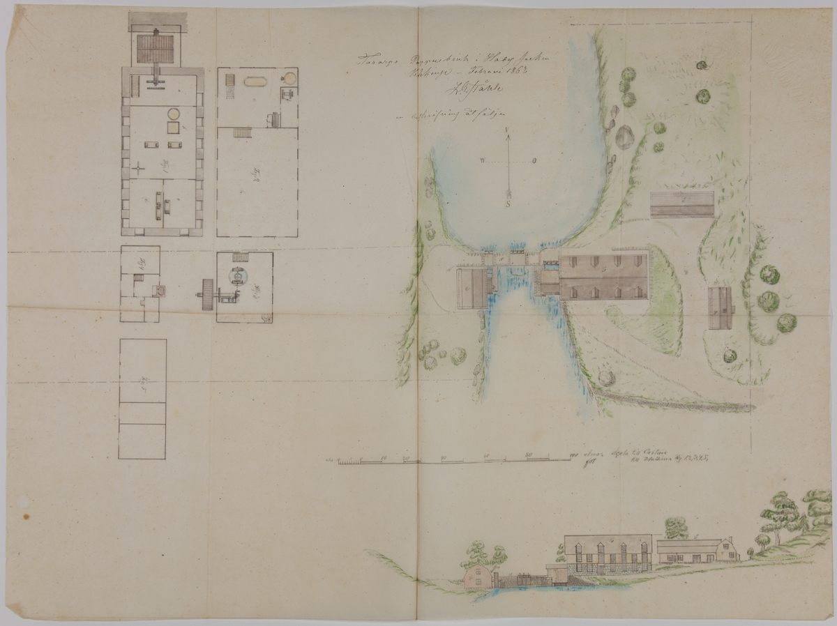 Kolorerad plankarta över Tararps pappersbruk i Blekinge.