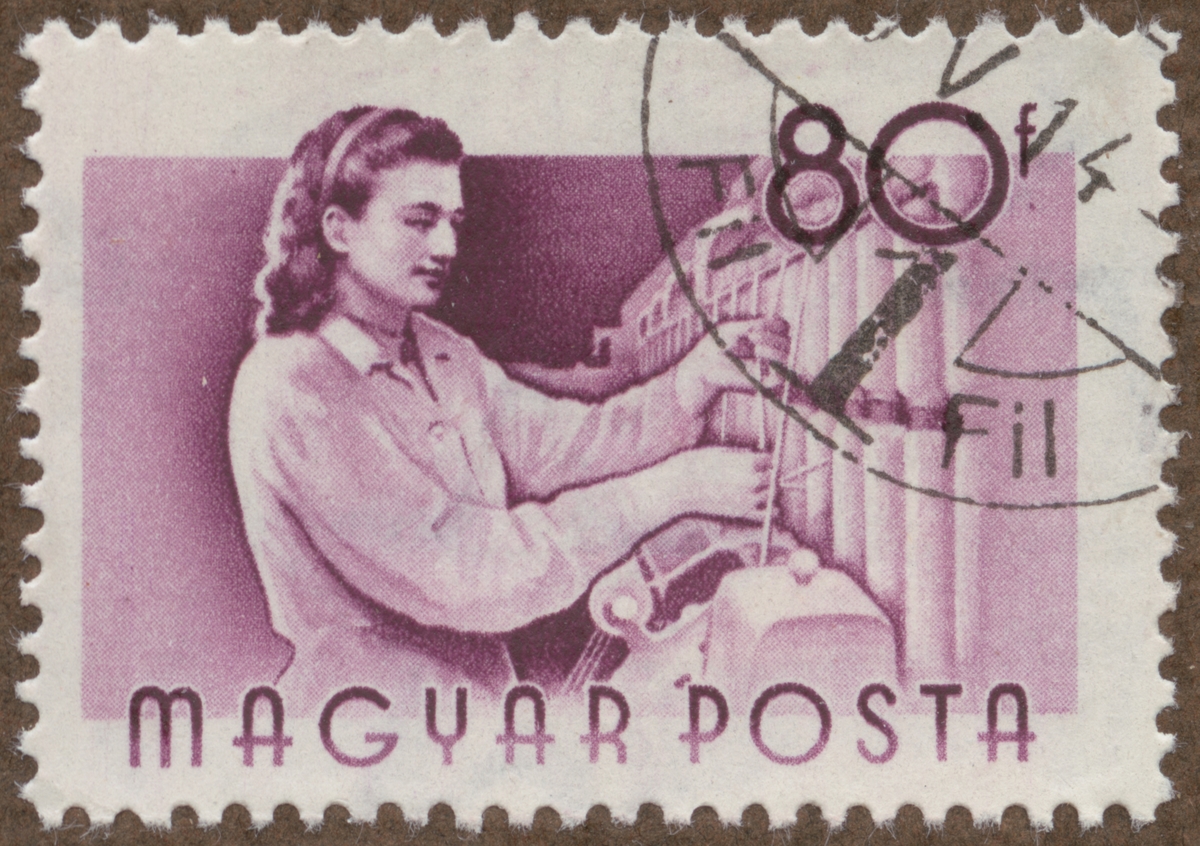 Frimärke från Ungern, 1955. Motiv av ungersk spinnerska. "Yrkesserie".