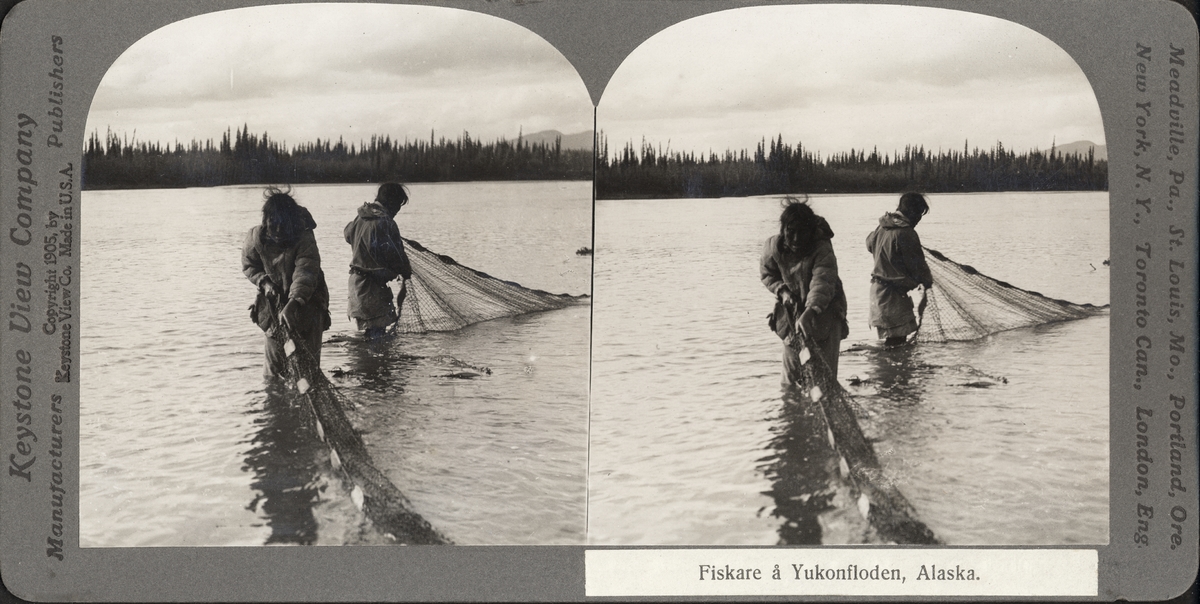 Stereobild. Fiske på Yukonfloden, Alaska.