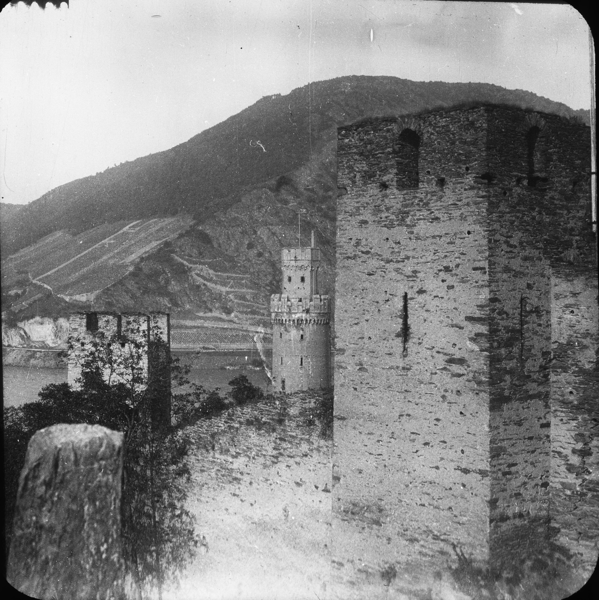 Skioptikonbild med motiv av Burg Schönburg, Oberwesel.