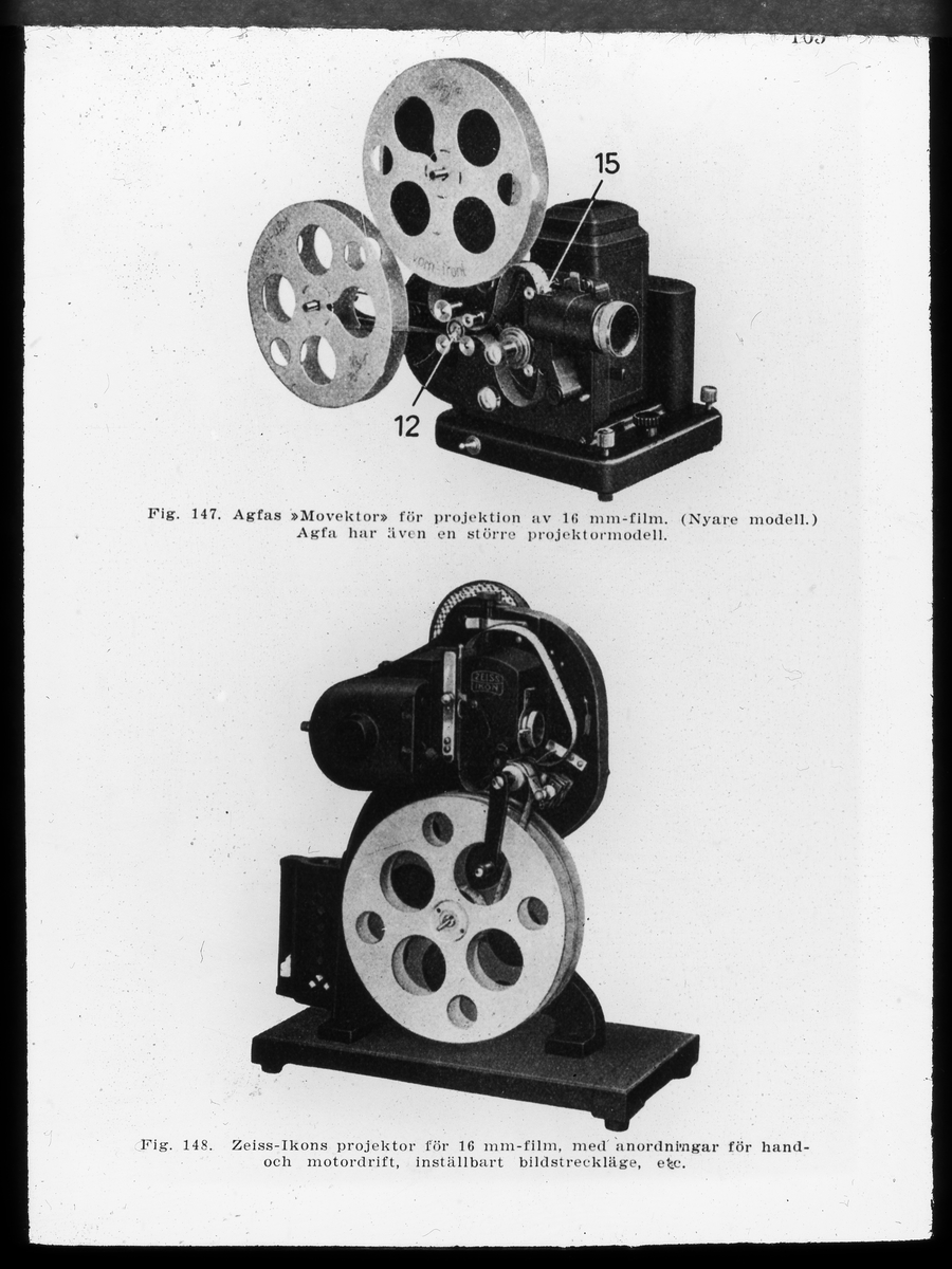 Två projektorer för 16 mm film från Agfa respektive Zeiss.