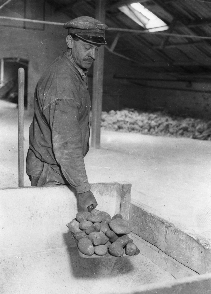 Gustavsbergs Porslinsfabrik. Flinta hälles i blandningsmaskinen.