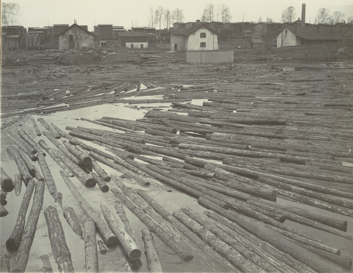 Boxholms Järnverk. Sågdammen och brädgården omkring 1918.