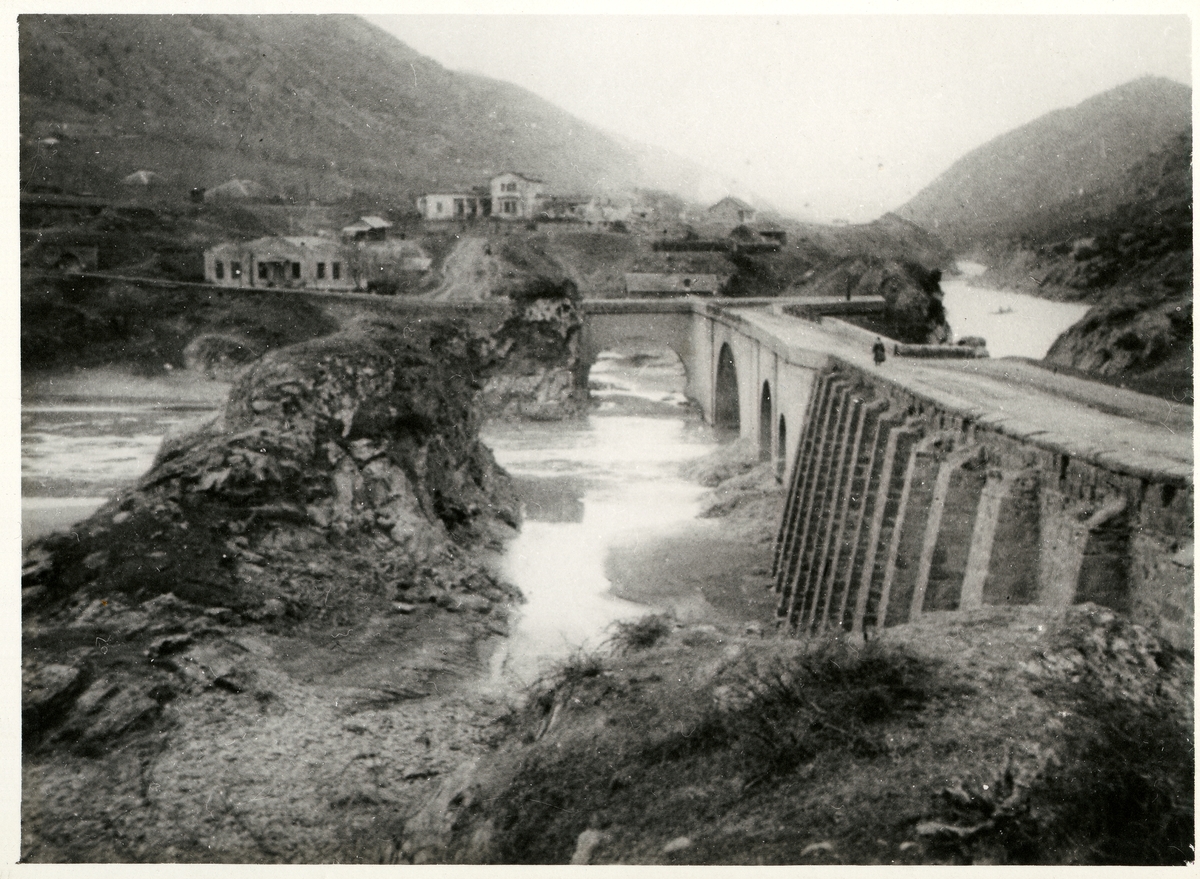 Bro i Mtskheta över floden Terek längs Grusinska härvägen, Kaukasus.