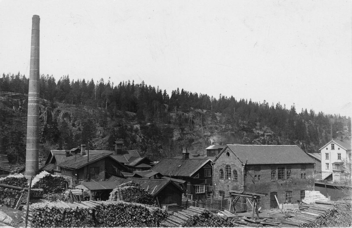 AB Papyrus i Mölndal. Bruket före rivningen 1918.