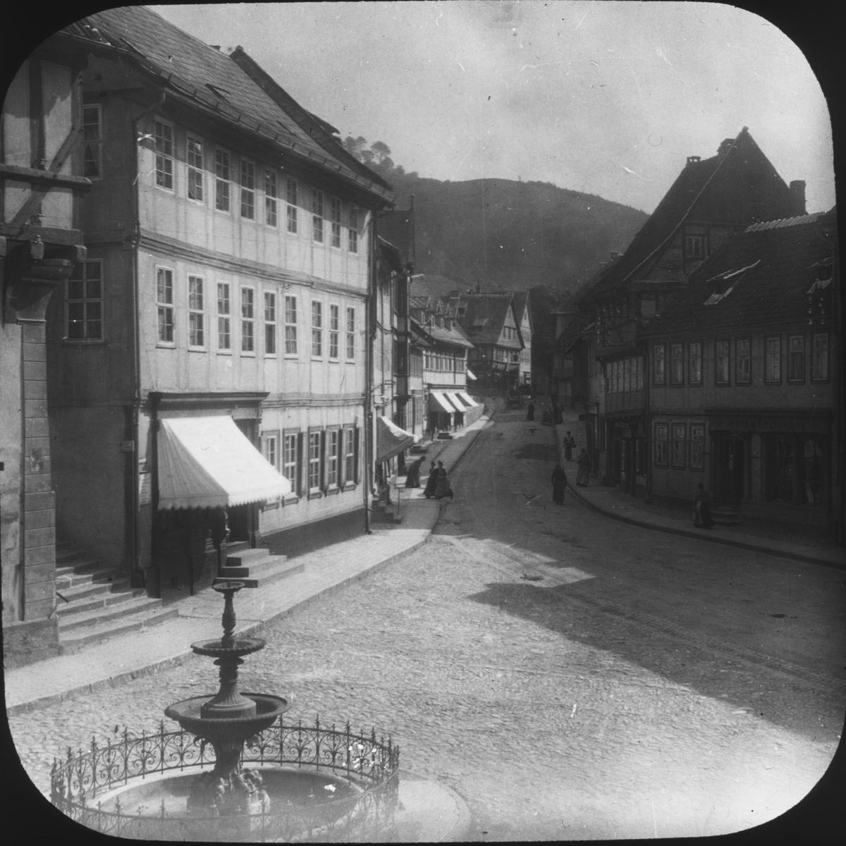 Skioptikonbild med motiv av Stolberg, sett från Rådhuset.