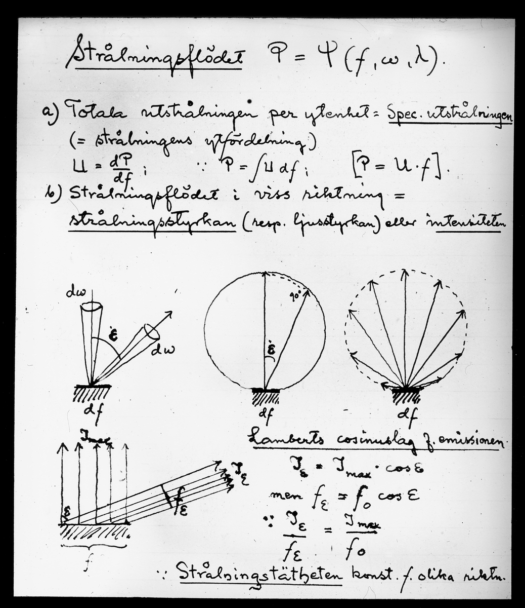 Strålningsflöde + Lamberts cosinus lag för emulsionen.