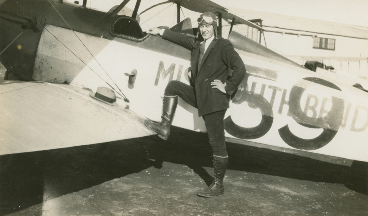 Fotografi från låda märkt Bernt Balchen. Balchen var norsk-amerikansk flygare, polarforskare och militär. Motiv av pilot vid flygplan.