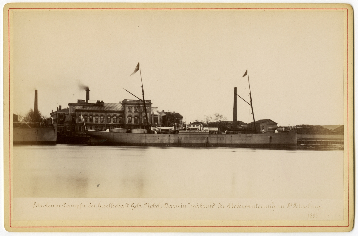 Petroleumångaren "Darwin" tillhörnade aktiebolaget Bröderna Nobel under övervintring i St. Petersburg.