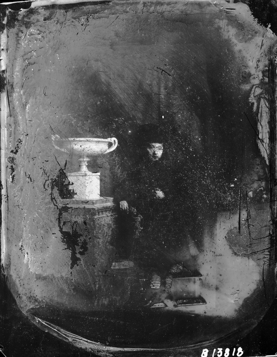 Skålstaty, i bakgrunden en kvinna?. Troligen från 1850-talet