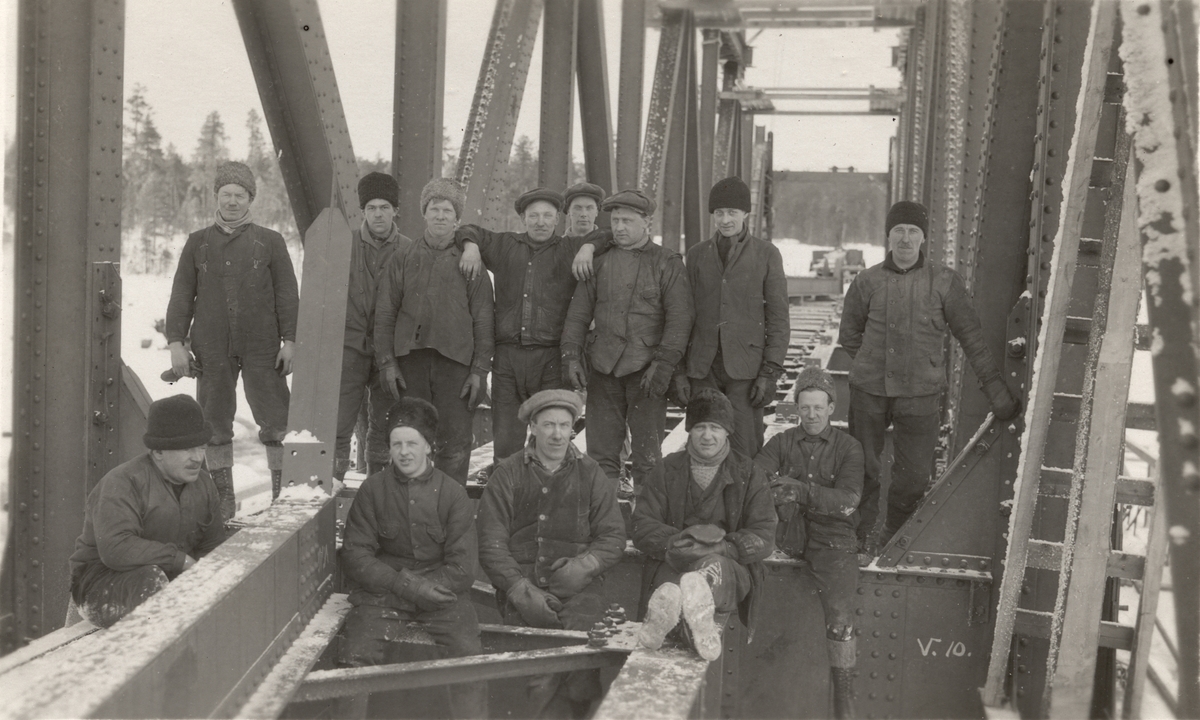 Järnvägsarbetare på Akkatsbron, Inlandsbanan.