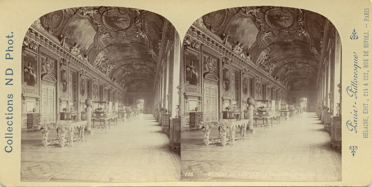 Stereobild med motiv från galleri d'Avalon i museet Louvren, Paris.