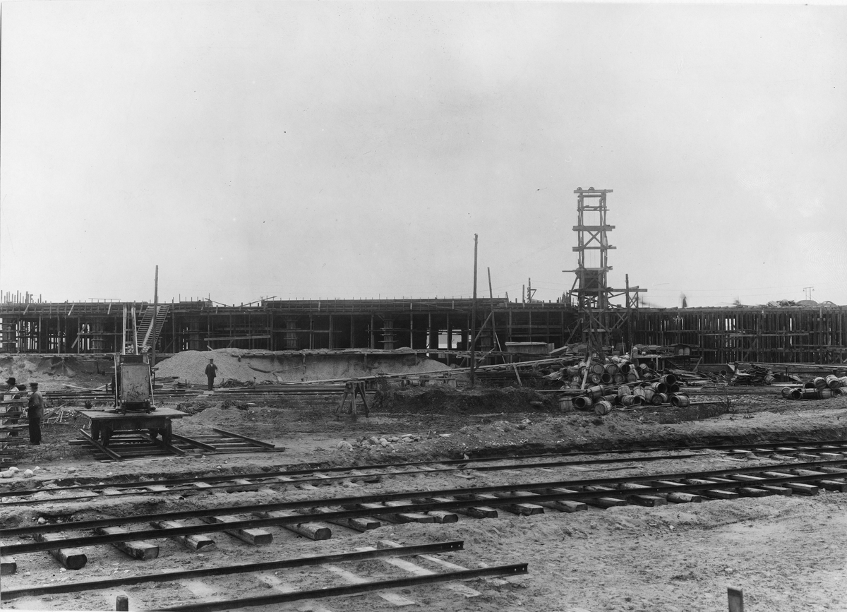 Varuskjul vid Lindarängen, Stockholm. Arbetsbild.