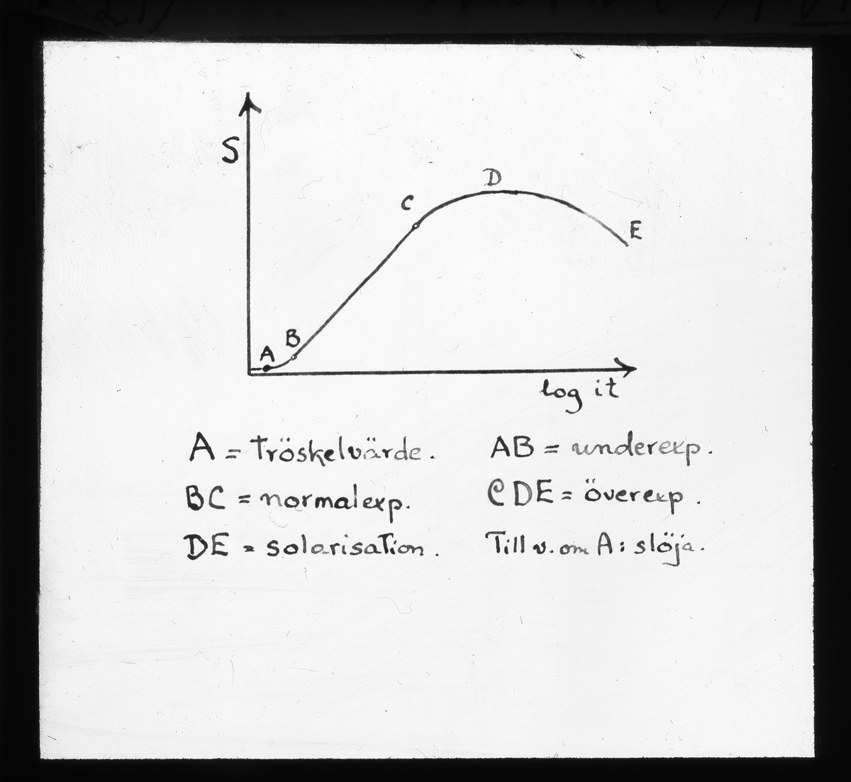 Skioptikonbild från Institutionen för fotografi vid Kungliga Tekniska Högskolan. Använd av professor Helmer Bäckström som föreläsningsmaterial. Bäckström var Sveriges första professor i fotografi vid Kungliga Tekniska Högskolan i Stockholm 1948-1958.