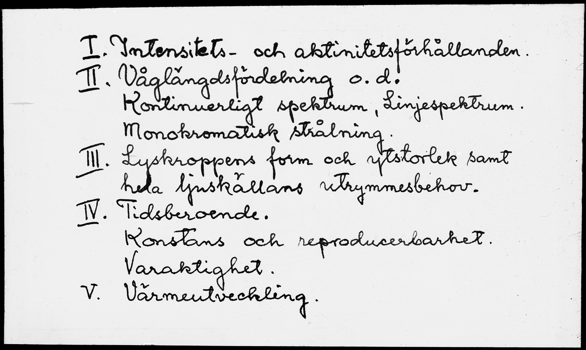 Skioptikonbild från Institutionen för fotografi vid Kungliga Tekniska Högskolan. Använd av professor Helmer Bäckström som föreläsningsmaterial. Bäckström var Sveriges första professor i fotografi vid Kungliga Tekniska Högskolan i Stockholm 1948-1958.