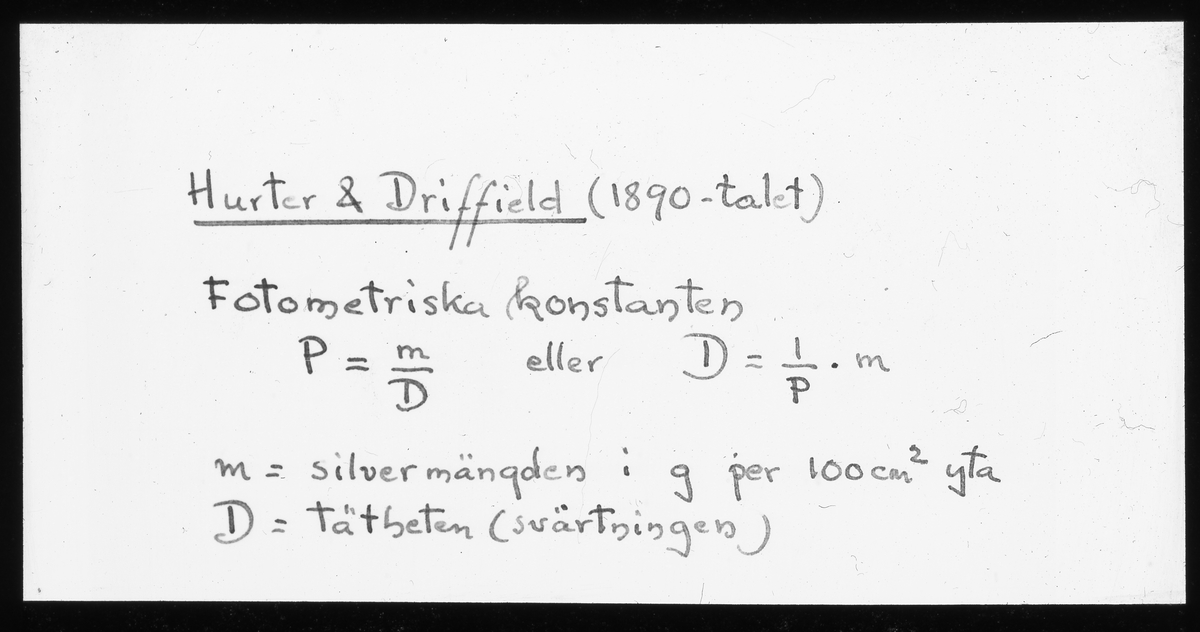 Skioptikonbild från Institutionen för fotografi vid Kungliga Tekniska Högskolan. Använd av professor Helmer Bäckström som föreläsningsmaterial. Bäckström var Sveriges första professor i fotografi vid Kungliga Tekniska Högskolan i Stockholm 1948-1958.