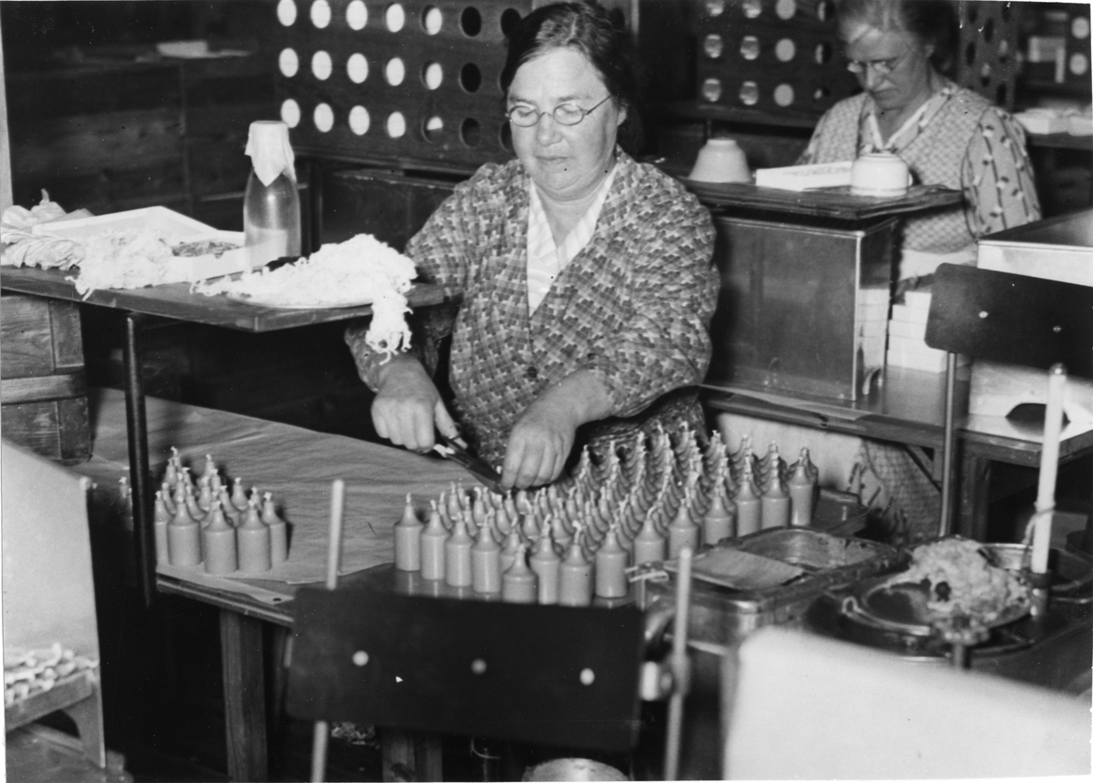 Liljeholmens Stearinfabrik. De färgade ljusen får en särskild behandling.