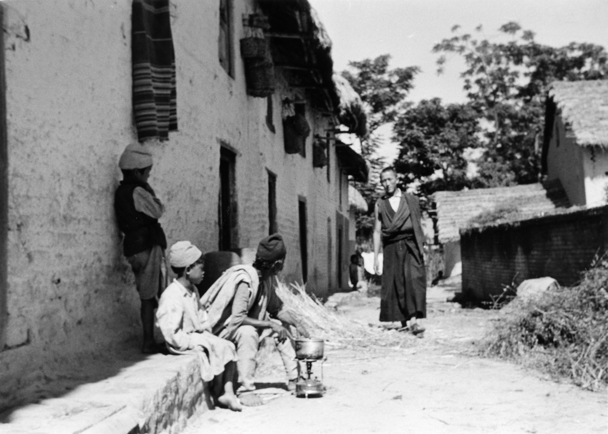 Titel: Pojke och man med fotogenkök från Optimus i Nepal 1962.