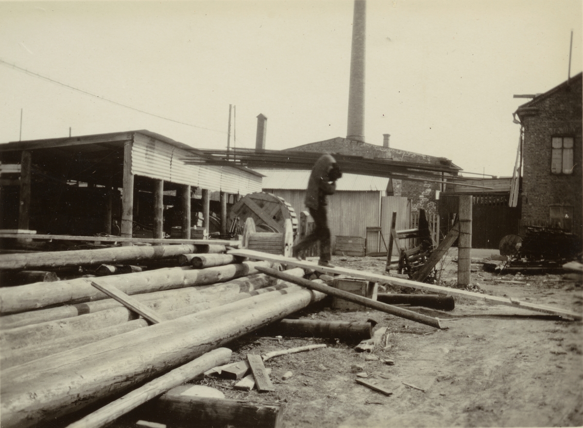 Finnvikskabeln. Lossning av kreosotvirke. Ur albumet Kabelarbetet Hjälmsälra (Hjälmsättra) - Norrtälje - Finnviken utfört under sommaren 1928.