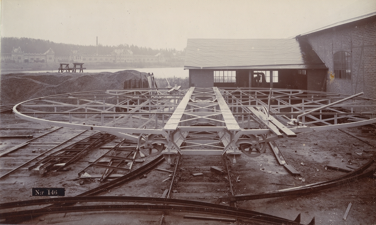 15 meters lokomotiv- vändskiva för normalspårvidd. Ur album för Vagnfabriks Aktiebolaget i Södertälge.