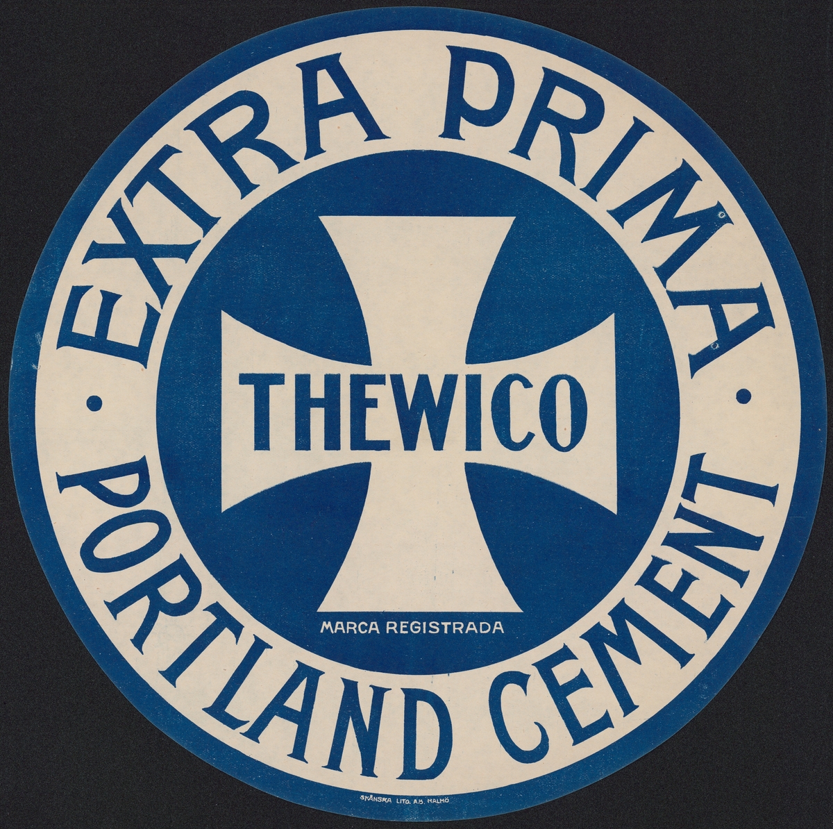Fabriksmärke för cementpåsar. Thewico. Extra Prima Portland Cement.