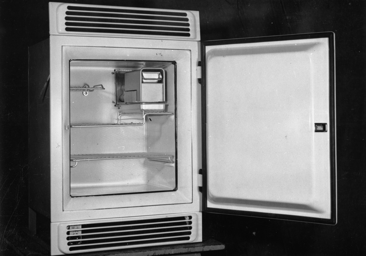 Apparatkonstruktioner. Förslag till kylskåp M 234 med mjuka dörröppnings lister av galonläder. Små kantförluster.