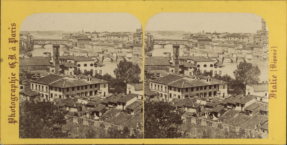 Stereobild, panoramavy över Le Ponts, Florens.