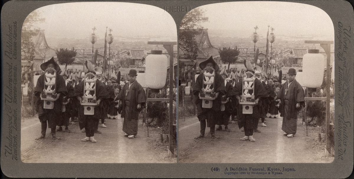 Stereobild av buddistisk begravning, Kyoto.