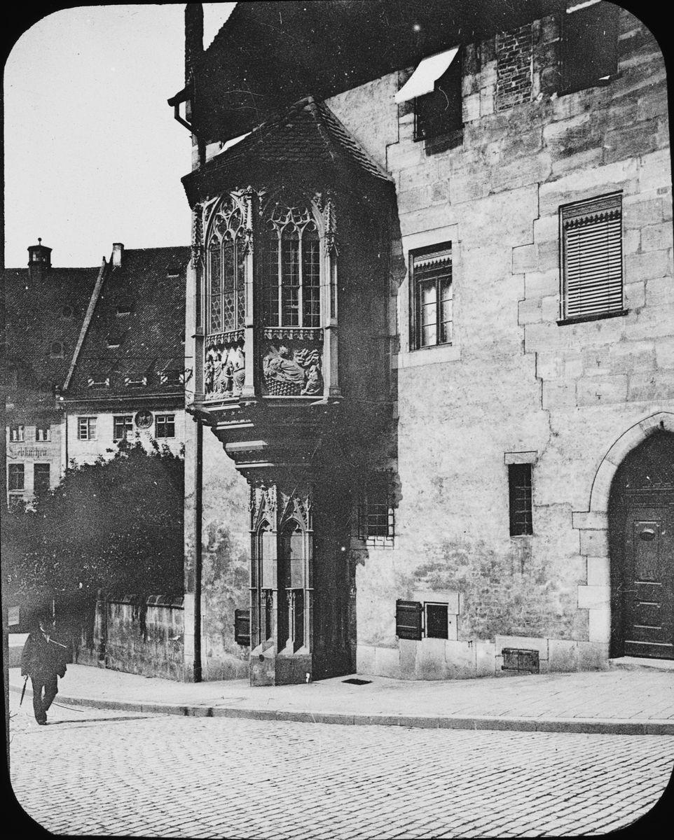 Bilden har förvarats i kartong märkt: Vårresan 1910. Nürnberg 9. XVI. Text på bild: "Sebalder Pfarkaf".