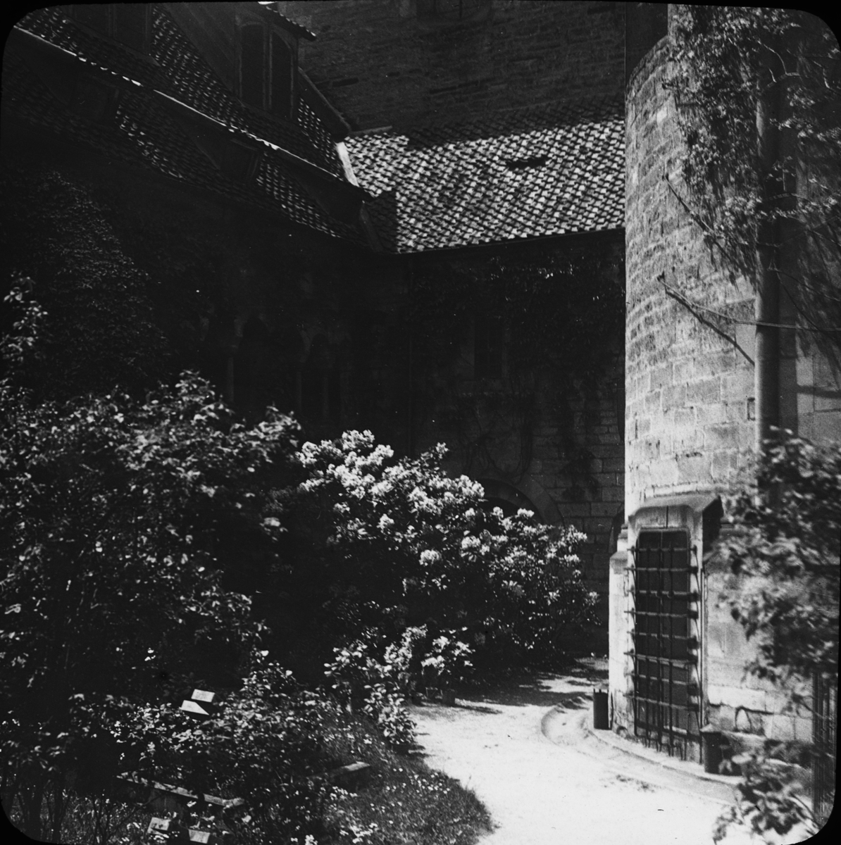 Skioptikonbild med motiv från Mariekirche med den 100-åriga rosenbusken, Hildesheim.