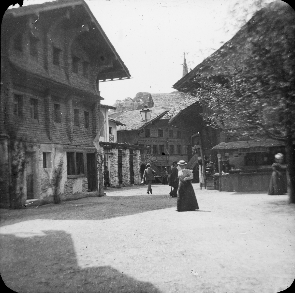 Skioptikonbild med motiv från Paris. Möjligen från världsutställning Exposition Universelle, 1900.