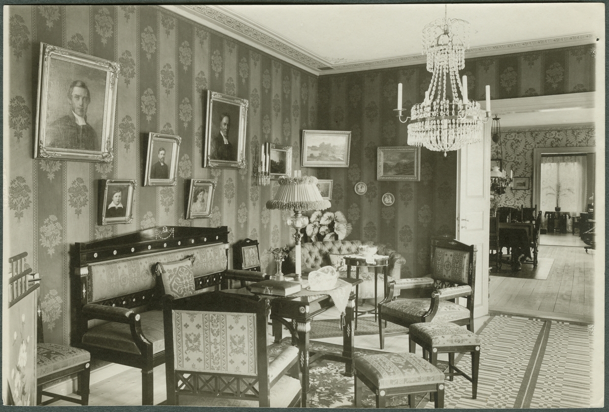 Interiör, troligen av Thorvald Gehrmans hem i Hedemora. Fotografi med kemiska retusch.