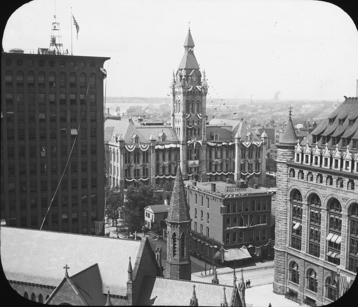 Skioptikonbild. OMöjligen Erie county hall New York USA.