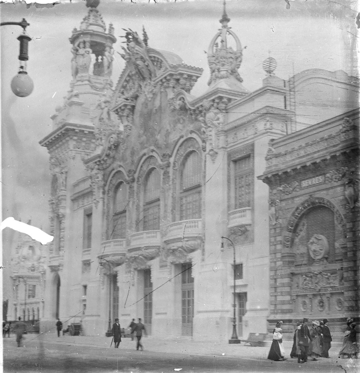 Skioptikonbild med motiv från Paris. Sevres vid världsutställningen Exposition Universelle, 1900.