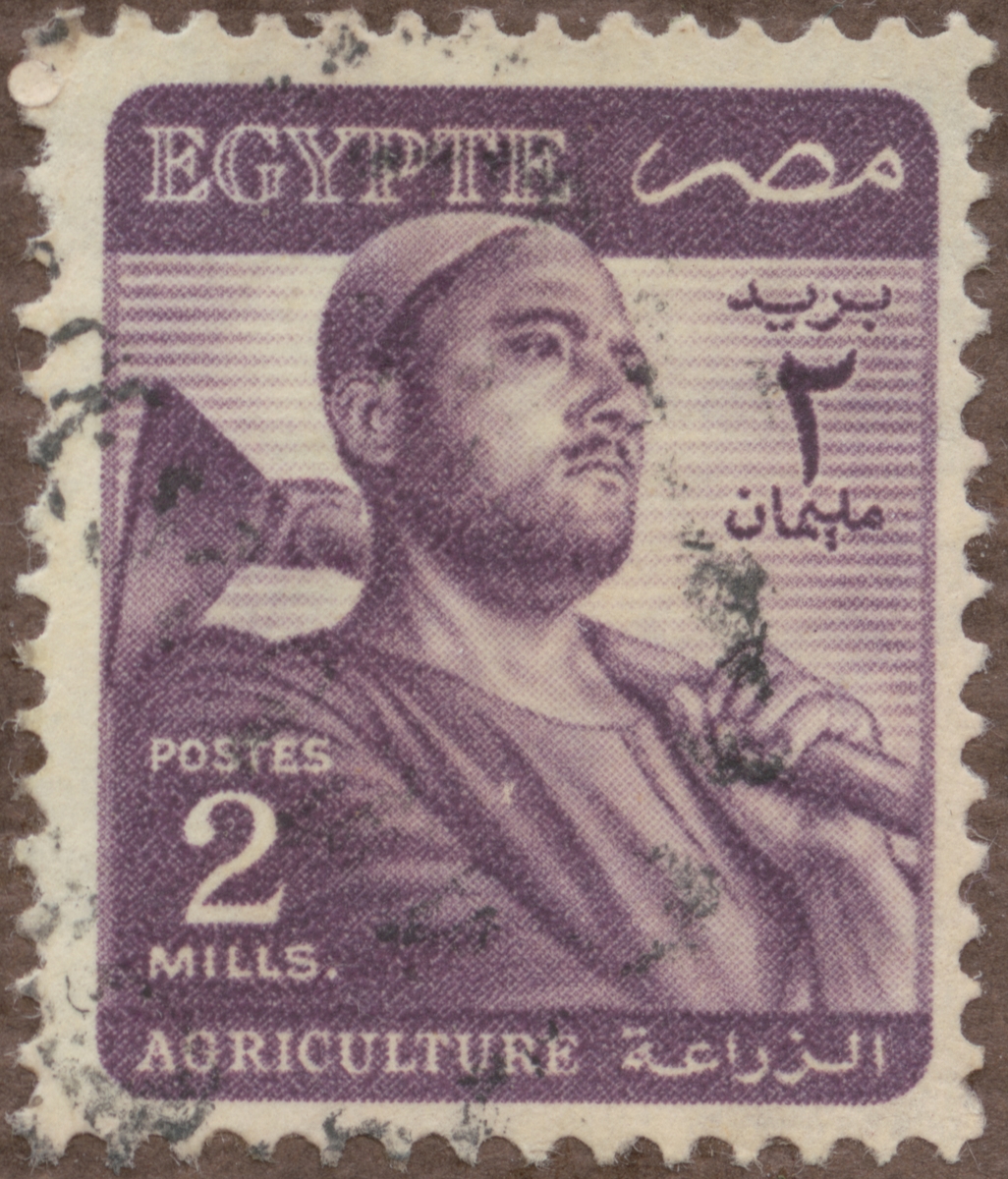 Frimärke från Republiken Egypten, 1953. Motiv av Egyptisk Bonde