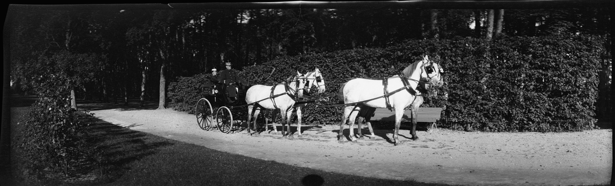 Drottning Victorias bilder. Panorama över ett fyrspan med trilla och passagerare. Troligen Tullgarn
