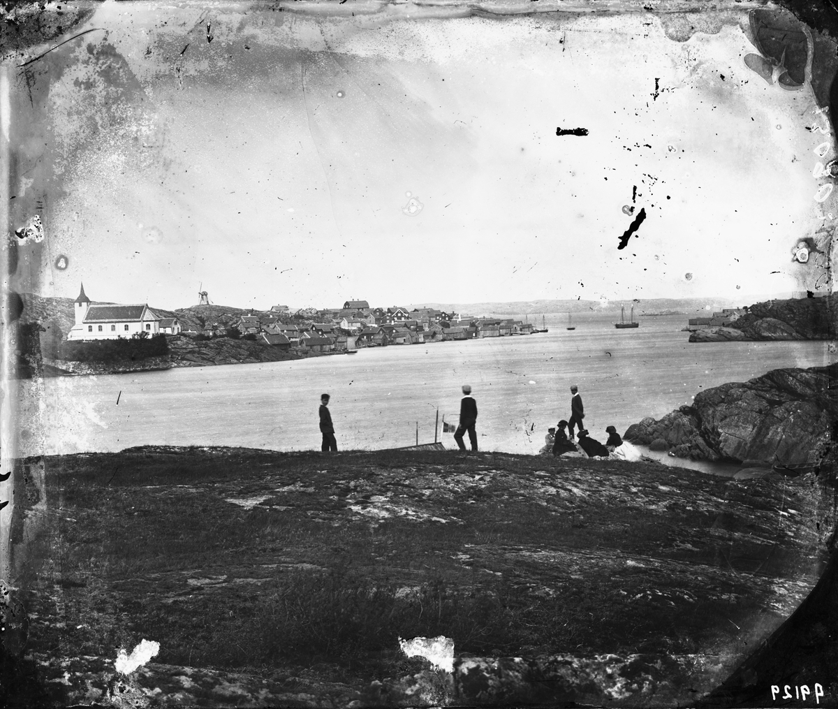 Bohusläns fiskeläger med Fiskebäckskils kyrka i bakgrunden.