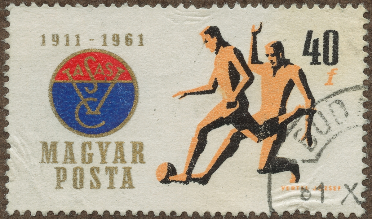 Frimärke från Ungern, 1961. Motiv av Fotbollsspelare Vasas Sportklub 50 år: 1911-1961.