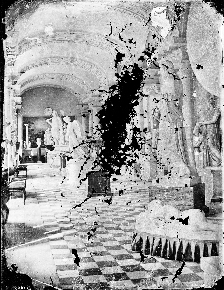 Titel: Interiör från nordöstra flygeln på Stockholms slott. Den inhyser Gustaf IIIs antiksamling.