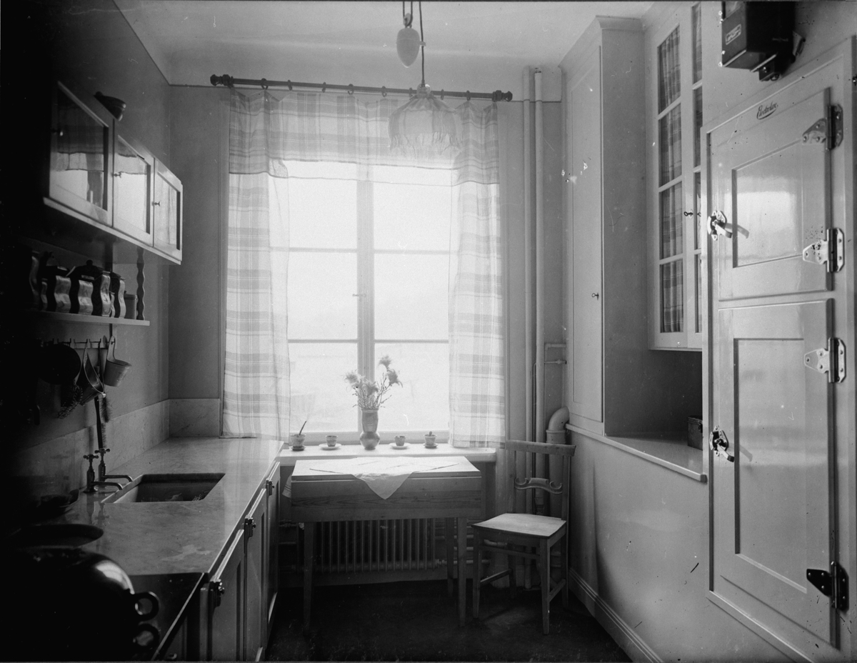 Kylskåp (typ D), kökinteriör. I 2 rumslägenhet, Sveavägen 115 Stockholm.