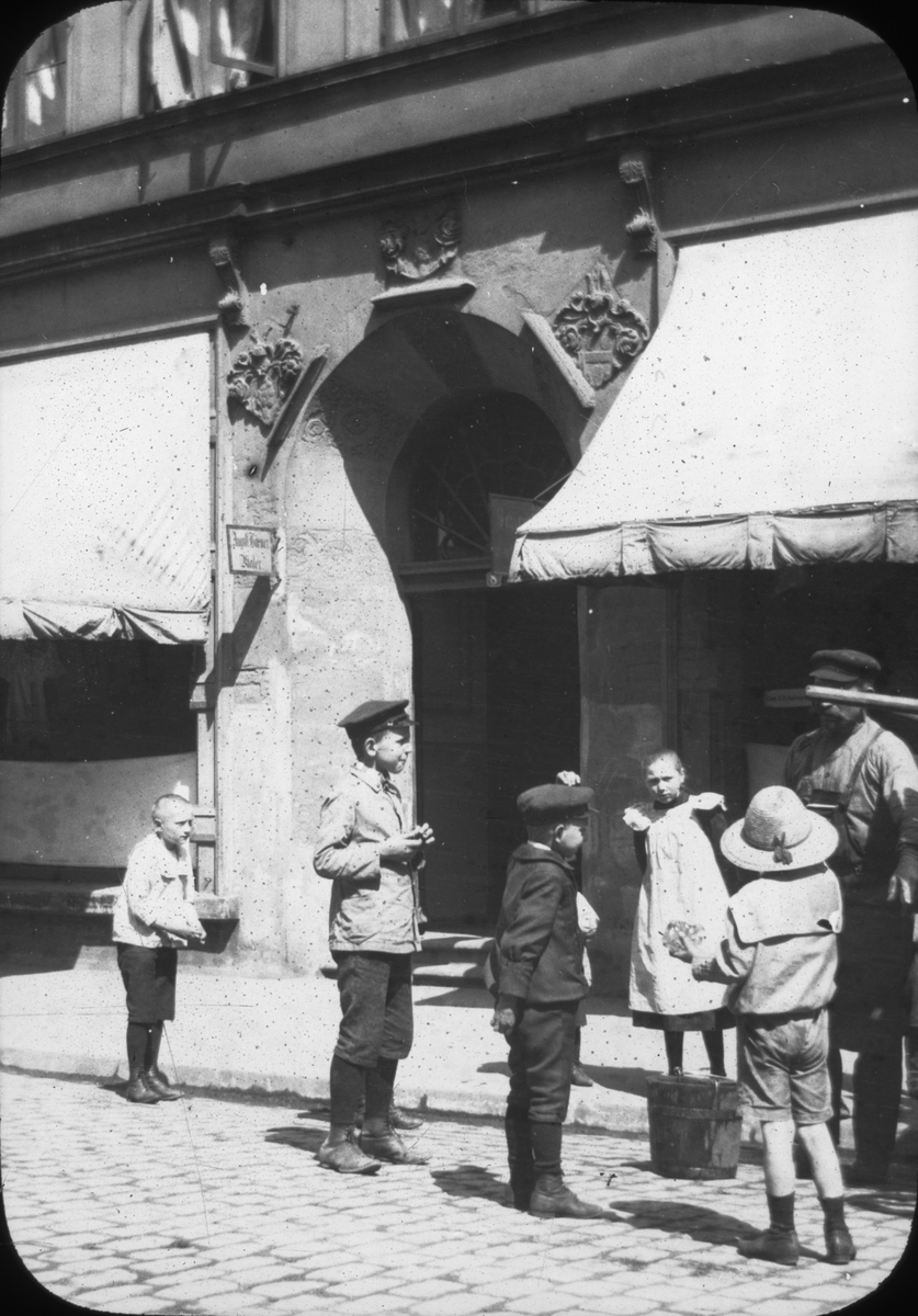 Skioptikonbild med motiv av barn på okänd gata i Lüneburg.