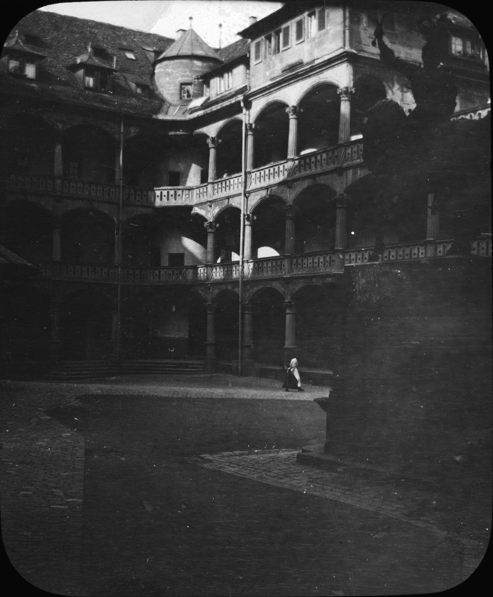 Skioptikonbild med motiv av Altes Schloss, det gamla slottet, Stuttgart.