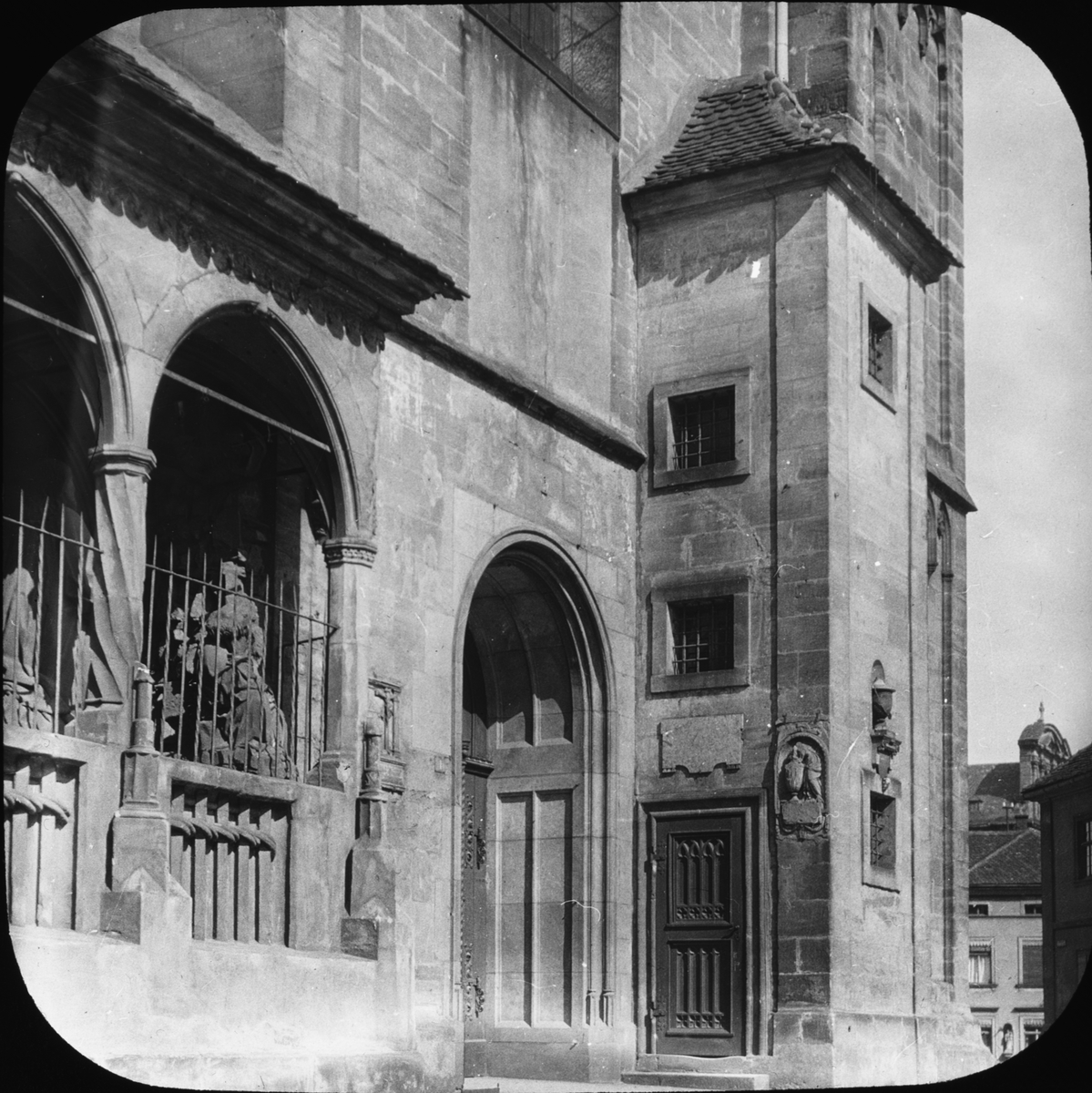 Skioptikonbild med motiv av okänt hus i Bamberg. Möjligen Lieben Fraukirche.