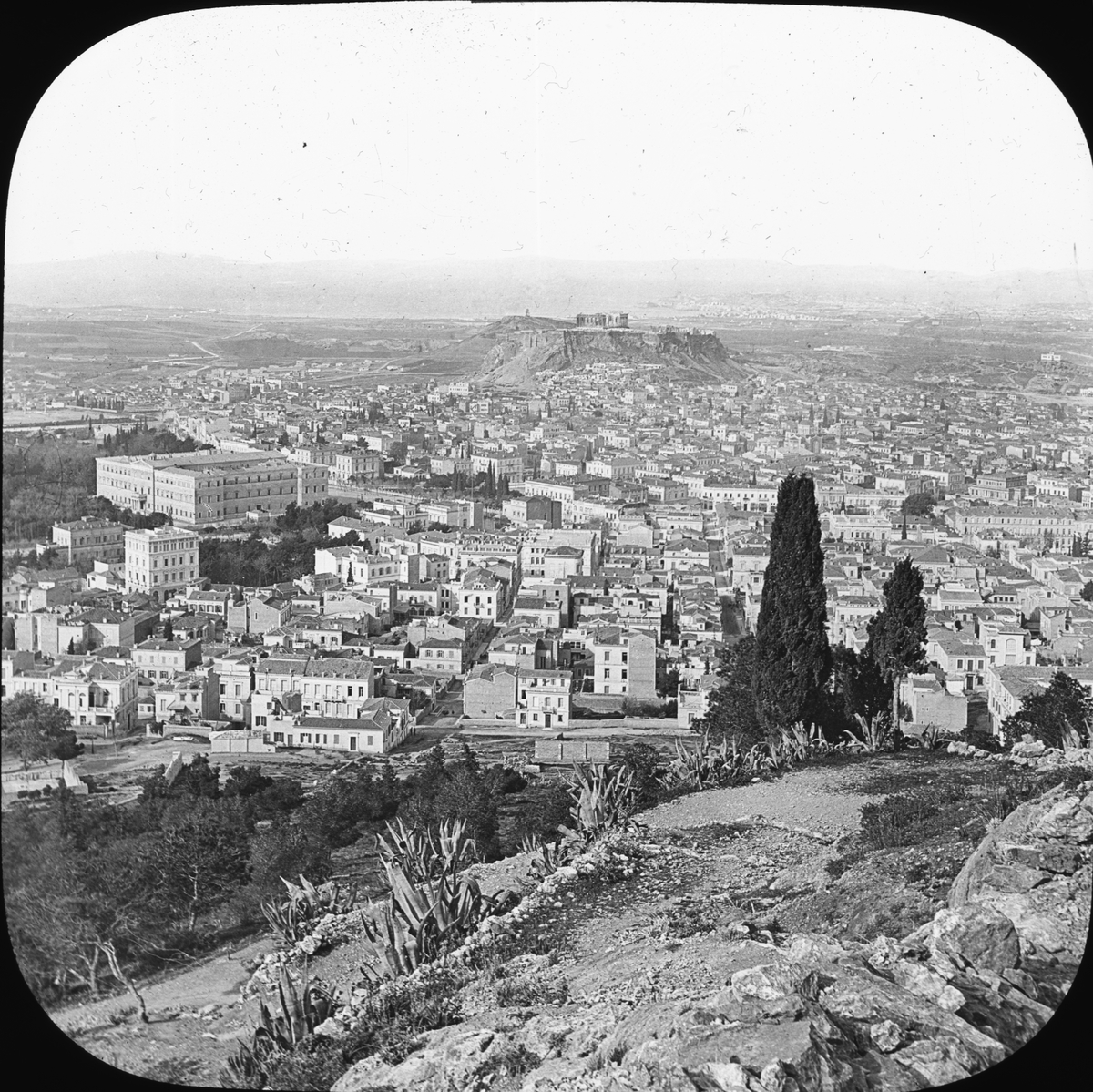 Skioptikonbild. Vy över Aten med Akropolisklippan.