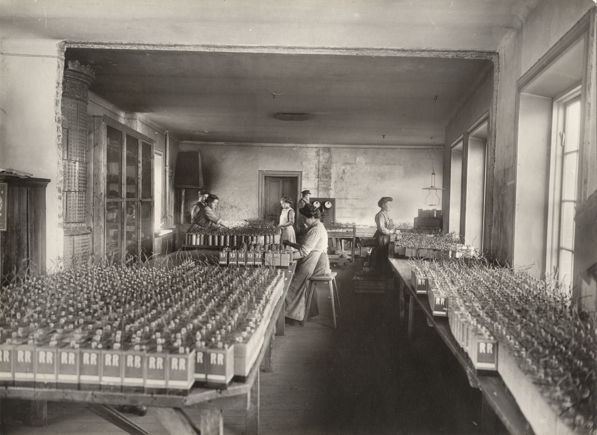 Rylander & Rudolphs Fabriks AB, Henriksdal, Stockholm. Interiör från tillverkning av batterier.