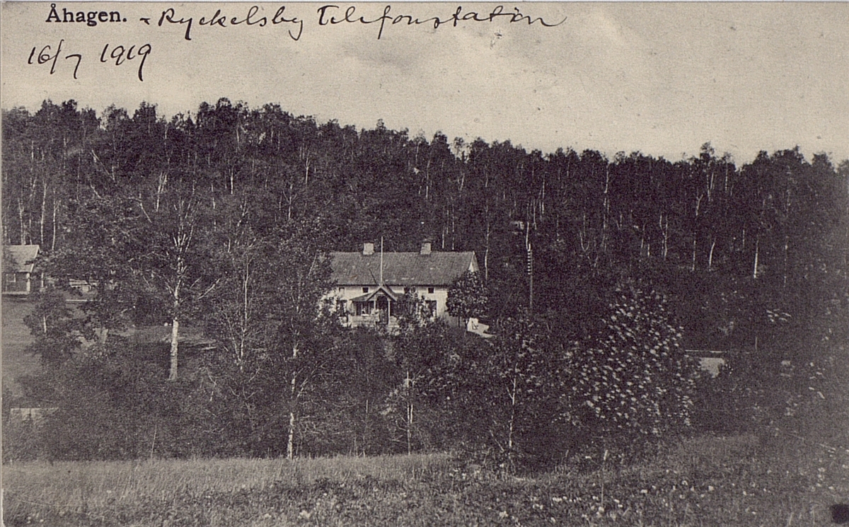 Vykort. Åhagen, Ryckelsby telefonstation.