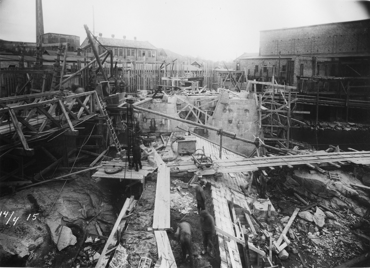 Ombyggnad av Trollhätte kanal, Trollhättan. Regleringsdammens östra tröskel.