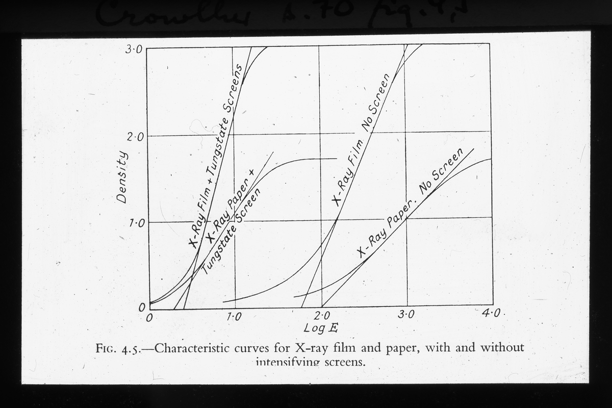 Karaktäristiska kurvor för röntgenfilm och papper med och utan förstärkningsskärmar.
